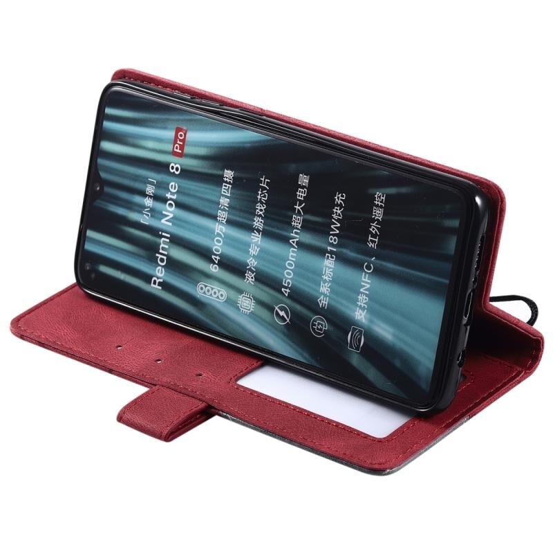 Για Xiaomi Redmi Note 8 Pro Skin Feel Splicing οριζόντια Flip δερμάτινη θήκη με θήκη & υποδοχές καρτών & πορτοφόλι & πλαίσιο φωτογραφιών (Κόκκινο)