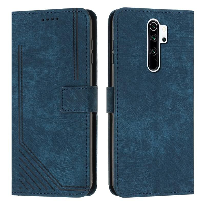 Για Xiaomi Redmi Note 8 Pro δέρμα αίσθηση ριγέ μοτίβο δερμάτινη θήκη τηλεφώνου με κορδόνι (μπλε)