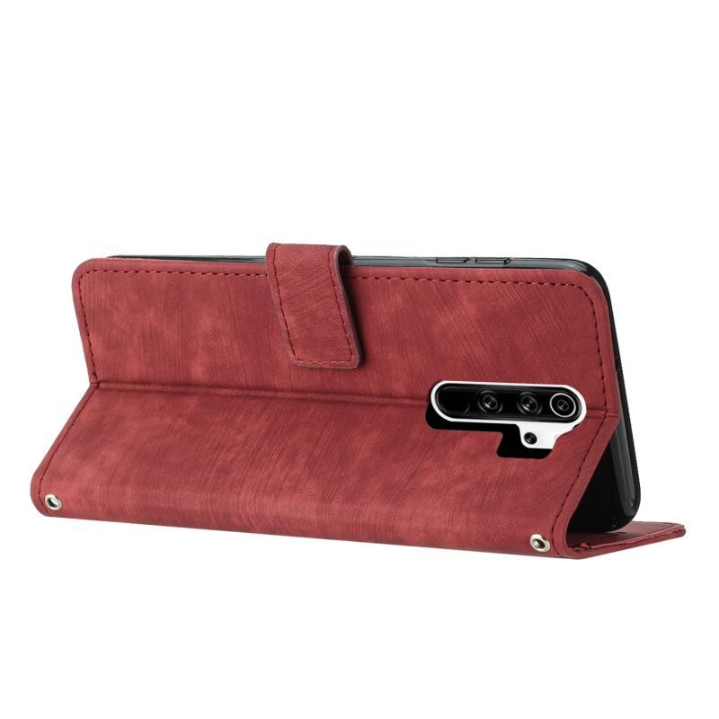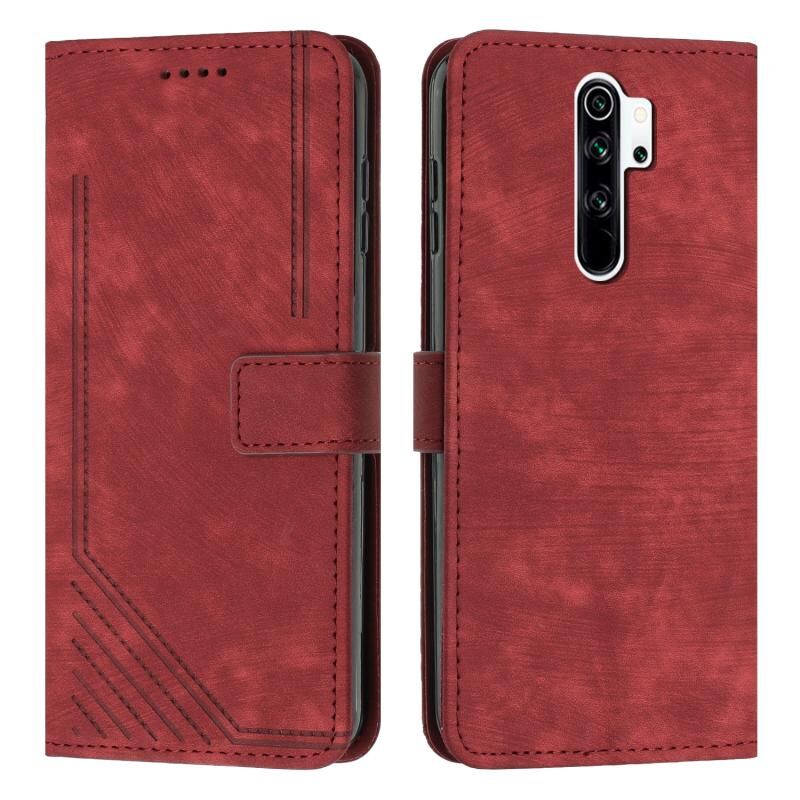 Για Xiaomi Redmi Note 8 Pro δέρμα αίσθηση ριγέ μοτίβο δερμάτινη θήκη τηλεφώνου με κορδόνι (κόκκινο)