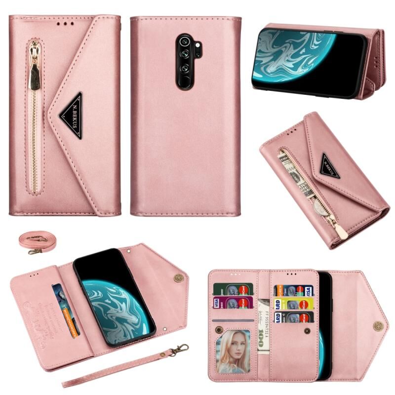 Θήκη για Xiaomi Redmi Note 8 Pro με υφή δέρματος, οριζόντια, με φερμουάρ, με βάση στήριξης, θήκες για κάρτες, κορνίζα φωτογραφιών, κορδόνι και μακρύ σχοινί (Μπλε)