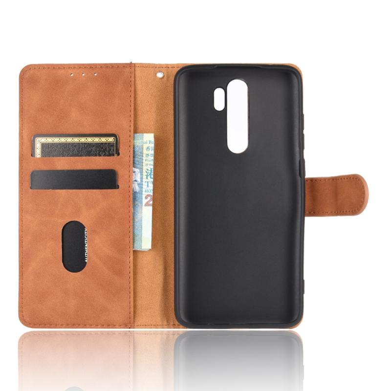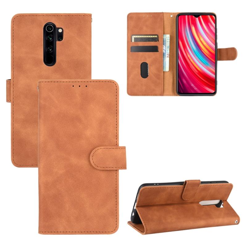 For Xiaomi Redmi Note 8 Pro Solid Color Skin Feel Magnetic Buckle Horizontal Flip Calf Texture PU Leather Case with Holder & Card Slots & Wallet(Brown)