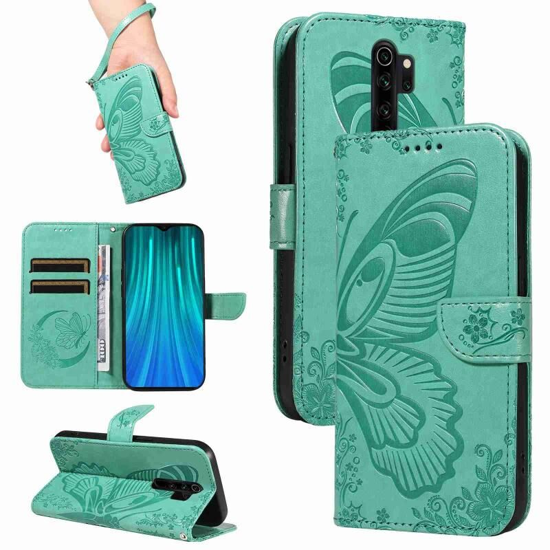 Θήκη τηλεφώνου δερμάτινη ανάγλυφη με σχέδιο πεταλούδας για Xiaomi Redmi Note 8 Pro (πράσινο)