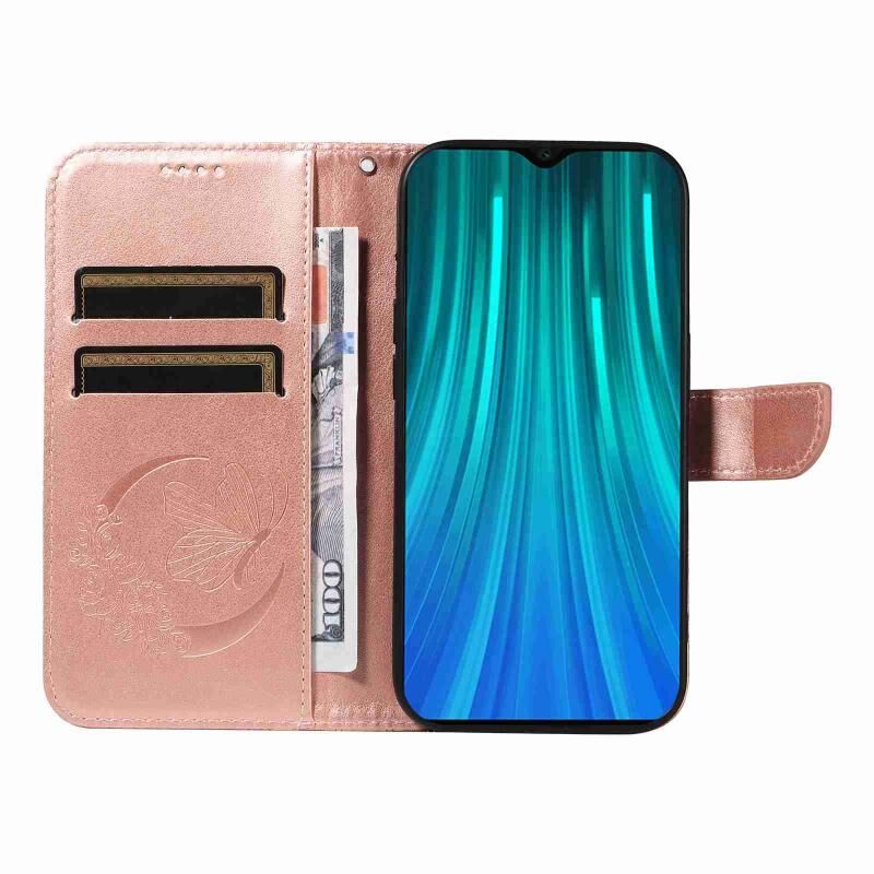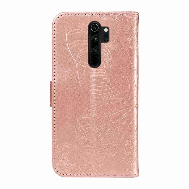 Θήκη τηλεφώνου δερμάτινη ανάγλυφη με σχέδιο πεταλούδας για Xiaomi Redmi Note 8 Pro (Ροζ χρυσός)
