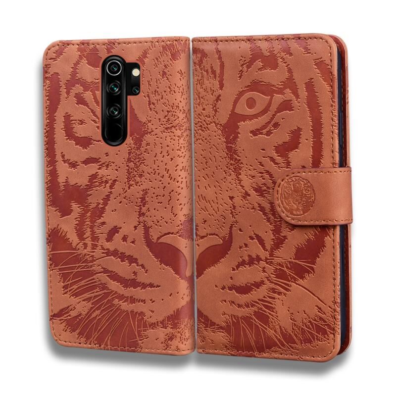 Θήκη δέρματος οριζόντιας αναδίπλωσης με ανάγλυφο σχέδιο τίγρης για Xiaomi Redmi Note 8 Pro με βάση & υποδοχές καρτών & πορτοφόλι (Καφέ)