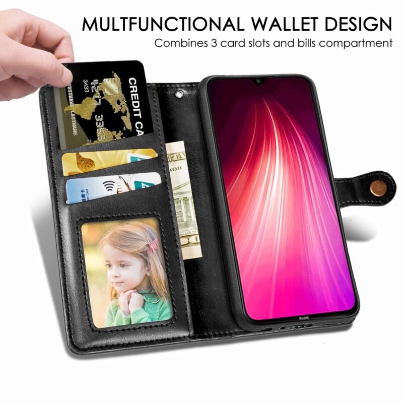 Για Xiaomi Redmi Note 8 Ρετρό στερεό χρώμα δέρμα αγκράφα τηλέφωνο υπόθεση με κορδόνι & πλαίσιο φωτογραφιών & υποδοχή κάρτας & πορτοφόλι & Stand λειτουργία (μαύρο)