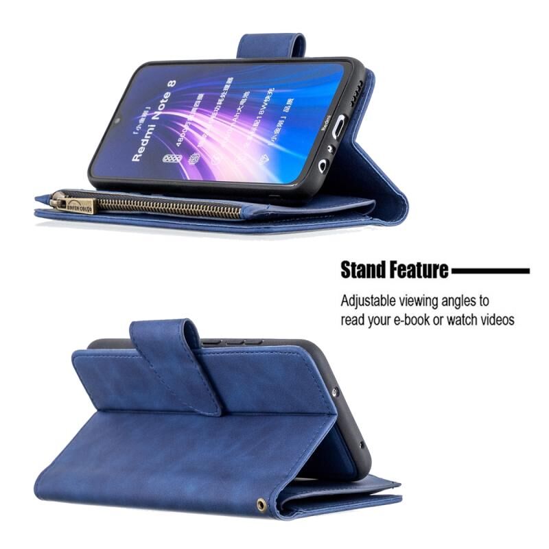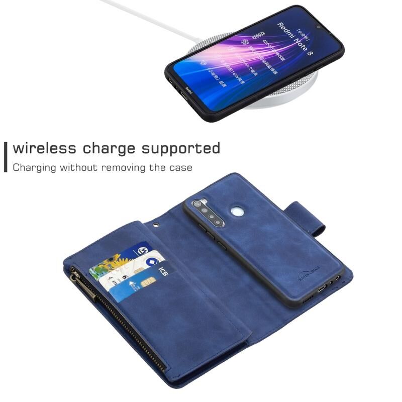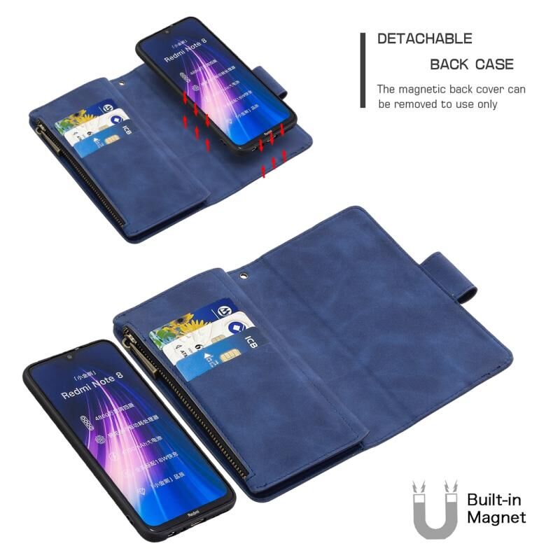 Για Xiaomi Redmi Note 8 Skin Feel Αποσπώμενο μαγνητικό φερμουάρ Οριζόντια Flip PU δερμάτινη θήκη με υποδοχές πολλαπλών καρτών & κάτοχος & πορτοφόλι & πλαίσιο φωτογραφιών & κορδόνι (μπλε)