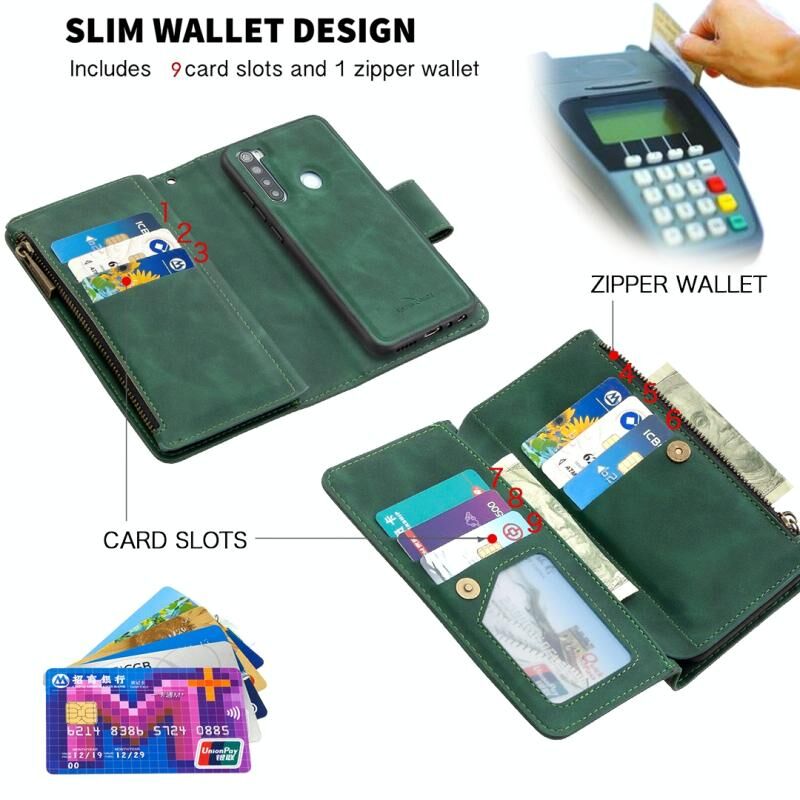 4. Πολυλειτουργικός σχεδιασμός, βολικές υποδοχές για κάρτες, πορτοφόλι με φερμουάρ, θήκη, αποσπώμενο μαγνητικό προστατευτικό κάλυμμα στο πίσω μέρος.