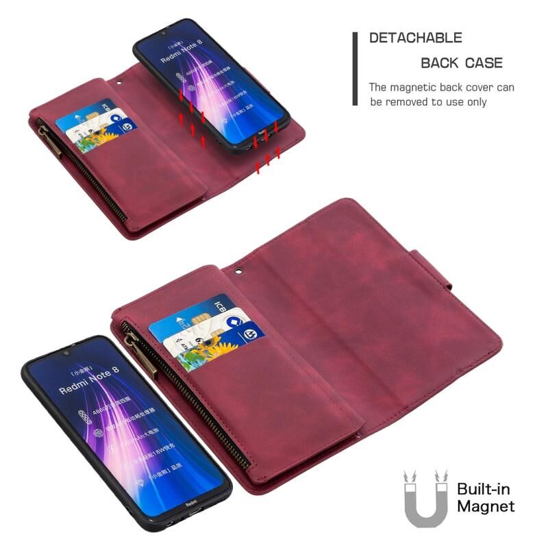 Για Xiaomi Redmi Note 8 Skin Feel Αποσπώμενο μαγνητικό φερμουάρ Οριζόντια Flip PU δερμάτινη θήκη με υποδοχές πολλαπλών καρτών & κάτοχος & πορτοφόλι & κορνίζα φωτογραφιών & κορδόνι (Κόκκινο)
