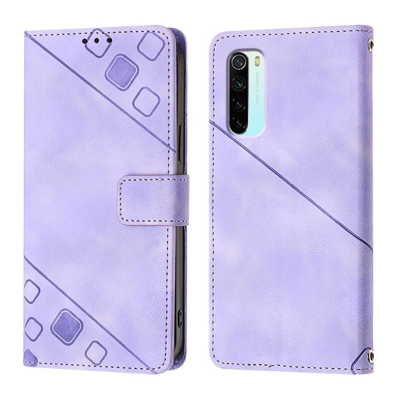 Για Xiaomi Redmi Note 8 δέρμα αίσθηση ανάγλυφη δερμάτινη θήκη τηλεφώνου (Light Purple)