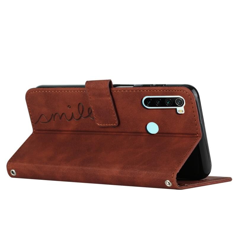 Για Xiaomi Redmi Note 8 δέρμα αίσθηση καρδιά μοτίβο δερμάτινη θήκη τηλεφώνου με κορδόνι (καφέ)
