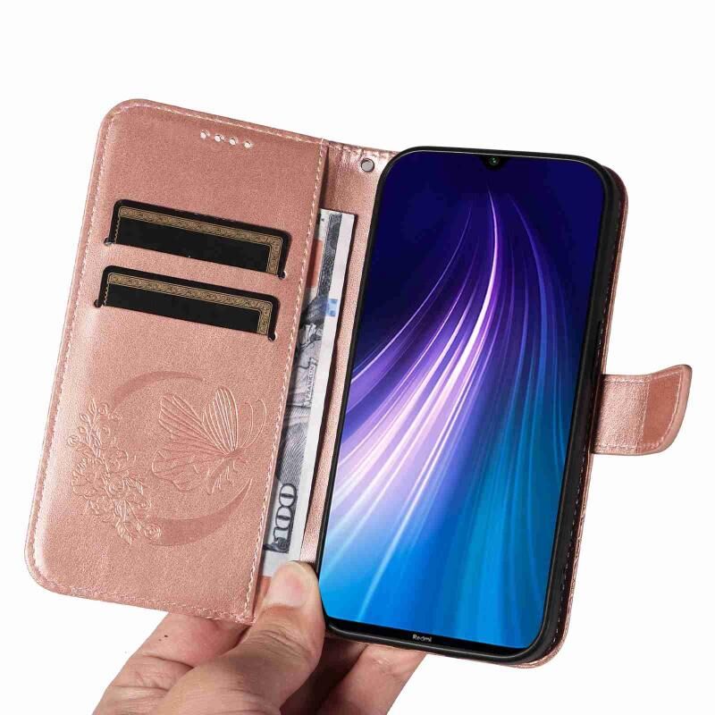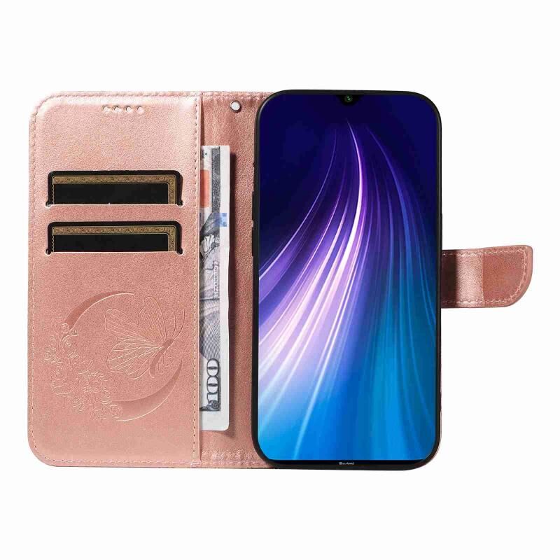 Θήκη τηλεφώνου δερμάτινη με ανάγλυφο σχέδιο πεταλούδας για Xiaomi Rose Goldmi Note 8 (Κόκκινη)