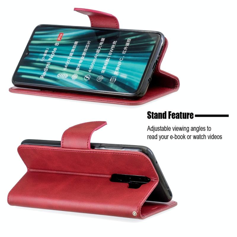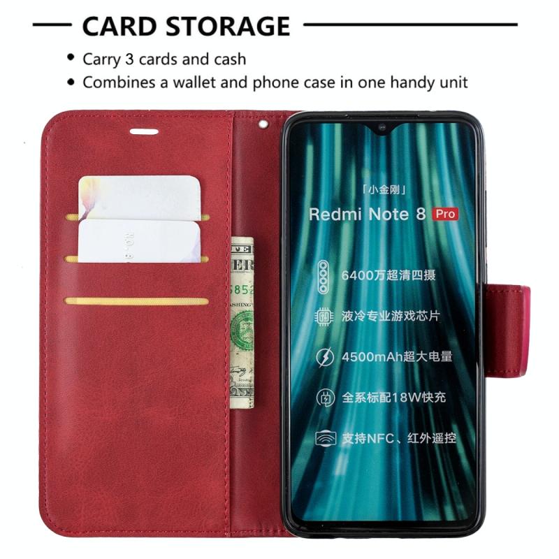 For Xiaomi Redmi Note 8Pro Retro Lambskin Texture Pure Color Horizontal Flip PU Leather Case with Holder & Card Slots & Wallet & Lanyard(Red)