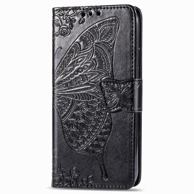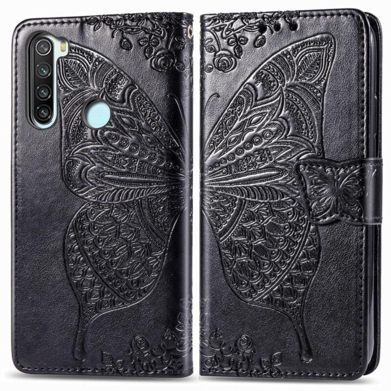 Θήκη δέρματος οριζόντιας αναδίπλωσης για Xiaomi Redmi Note 8T με ανάγλυφο σχέδιο πεταλούδας, λουλουδιών, με βάση στήριξης, κορδόνι και θήκη για κάρτες (Μαύρο)