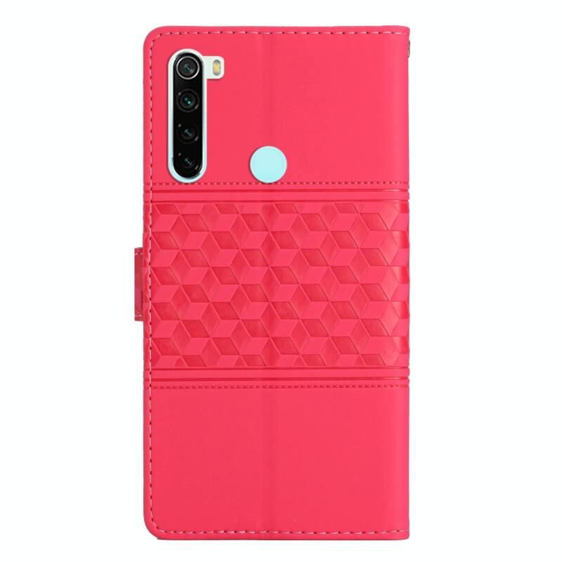 Για Xiaomi Redmi Note 8T Diamond ανάγλυφο δέρμα αίσθηση δέρμα τηλέφωνο υπόθεση με κορδόνι (κόκκινο)