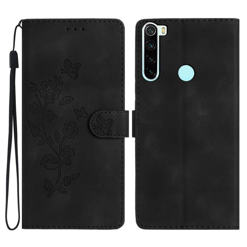 Για Xiaomi Redmi Σημείωση 8T λουλούδι πεταλούδα ανάγλυφο μοτίβο δερμάτινη θήκη τηλεφώνου (μαύρο)