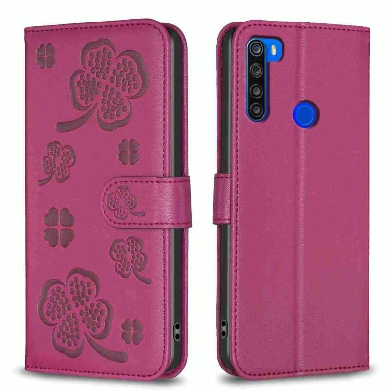 Για Xiaomi Redmi Note 8T τετράφυλλο ανάγλυφη δερμάτινη θήκη τηλεφώνου (Rose Red)