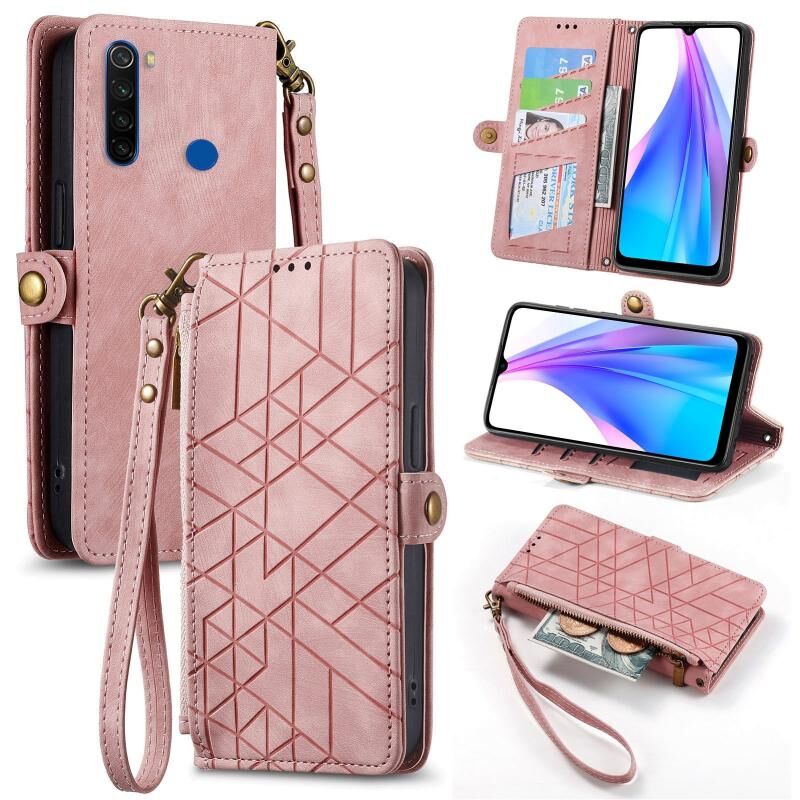 Για Xiaomi Redmi Note 8T γεωμετρική φερμουάρ πορτοφόλι πλευρά πόρπη δερμάτινη θήκη τηλεφώνου (ροζ)