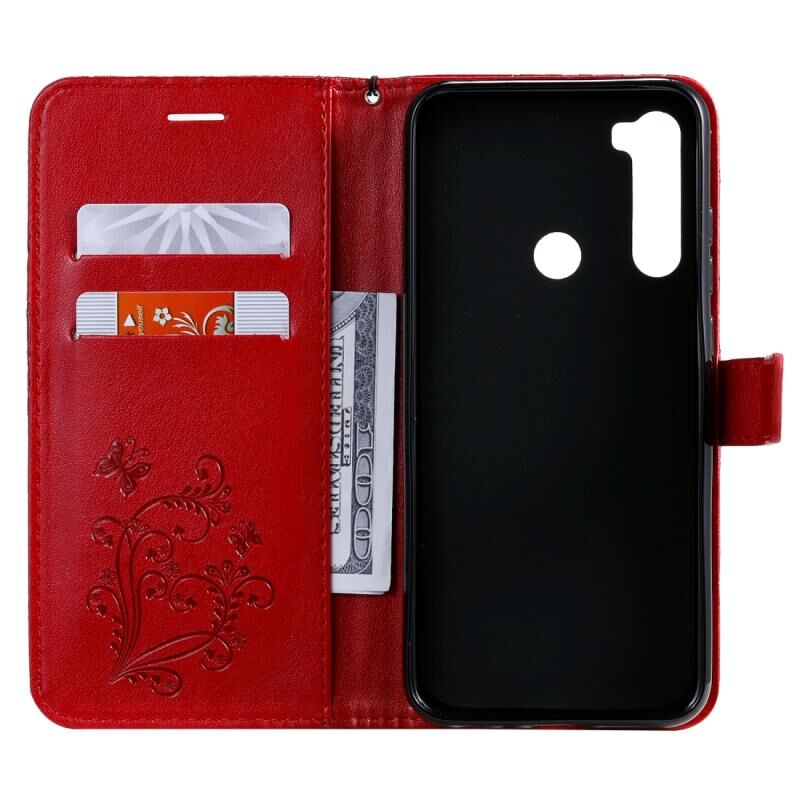 Θήκη για Xiaomi Redmi Note 8T με εκτύπωση, σχέδιο πεταλούδας, οριζόντια αναδίπλωση, από δερματίνη PU με βάση στήριξης & θήκες για κάρτες & πορτοφόλι & κορδόνι (Κόκκινο)