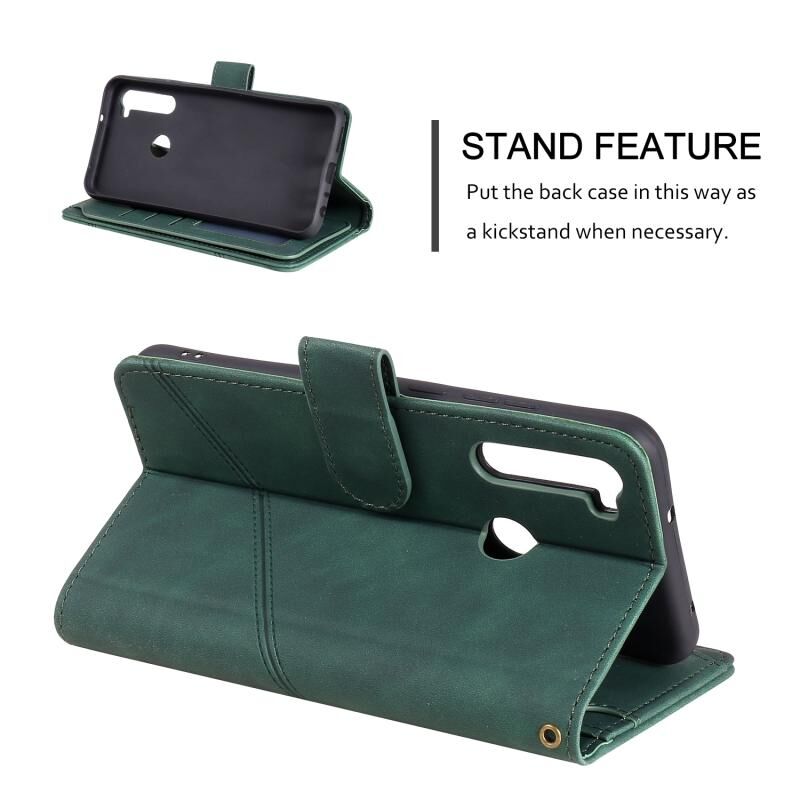 Για Xiaomi Redmi Note 8T Skin Feel Business Οριζόντια Flip PU δερμάτινη θήκη με θήκη & υποδοχές πολλαπλών καρτών & πορτοφόλι & κορδόνι & κορνίζα & πλαίσιο φωτογραφιών (πράσινο)