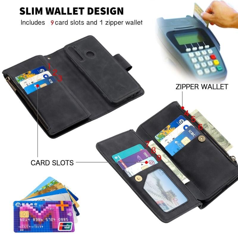 4. Πολυλειτουργικός σχεδιασμός, βολικές υποδοχές για κάρτες, πορτοφόλι με φερμουάρ, θήκη, αποσπώμενο μαγνητικό προστατευτικό κάλυμμα στο πίσω μέρος.