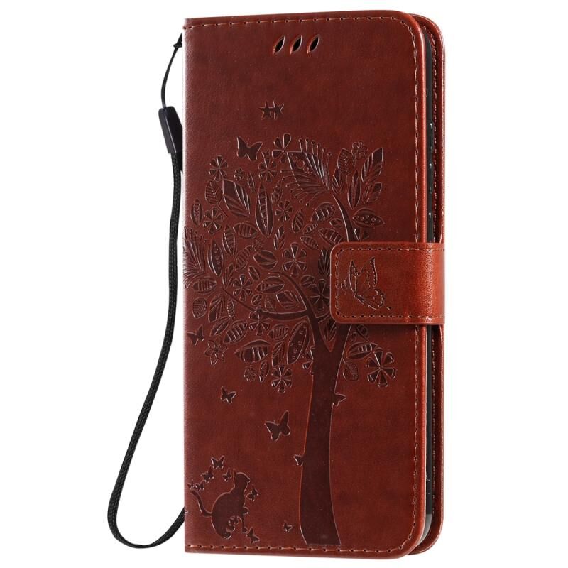 Θήκη για Xiaomi Redmi Note 8T με σχέδιο Δέντρου & Γάτας, εκτύπωση με πίεση, οριζόντια αναδίπλωση, από δερματίνη PU με βάση στήριξης & θήκες για κάρτες & πορτοφόλι & κορδόνι (Καφέ)