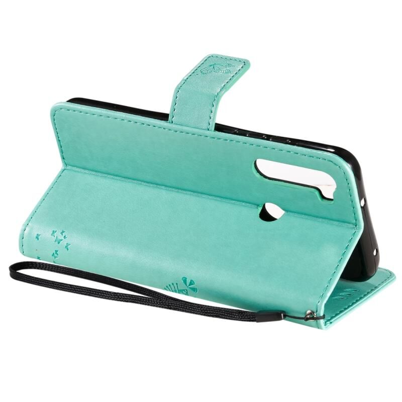 Θήκη για Xiaomi Redmi Note 8T με σχέδιο Δέντρου & Γάτας, εκτύπωση με πίεση, οριζόντια αναδίπλωση, από δερματίνη PU με βάση στήριξης & θήκες για κάρτες & πορτοφόλι & κορδόνι (Πράσινο)