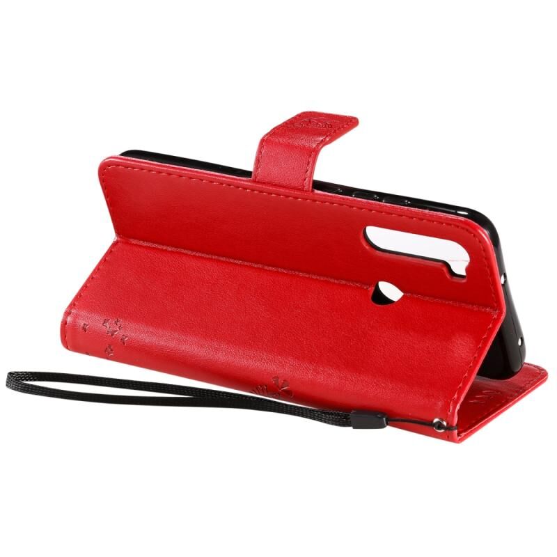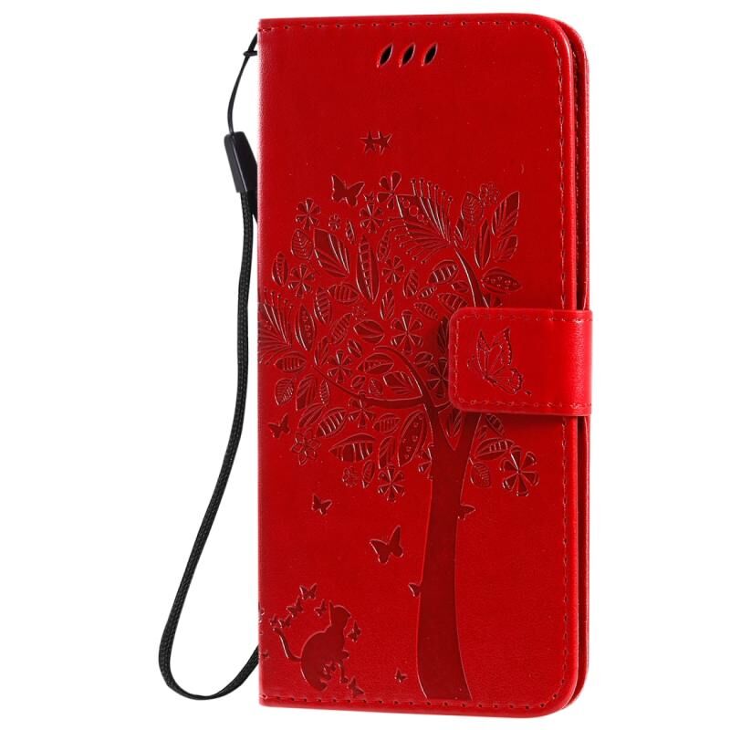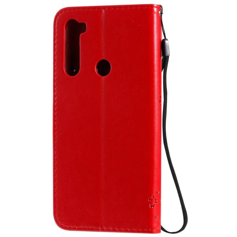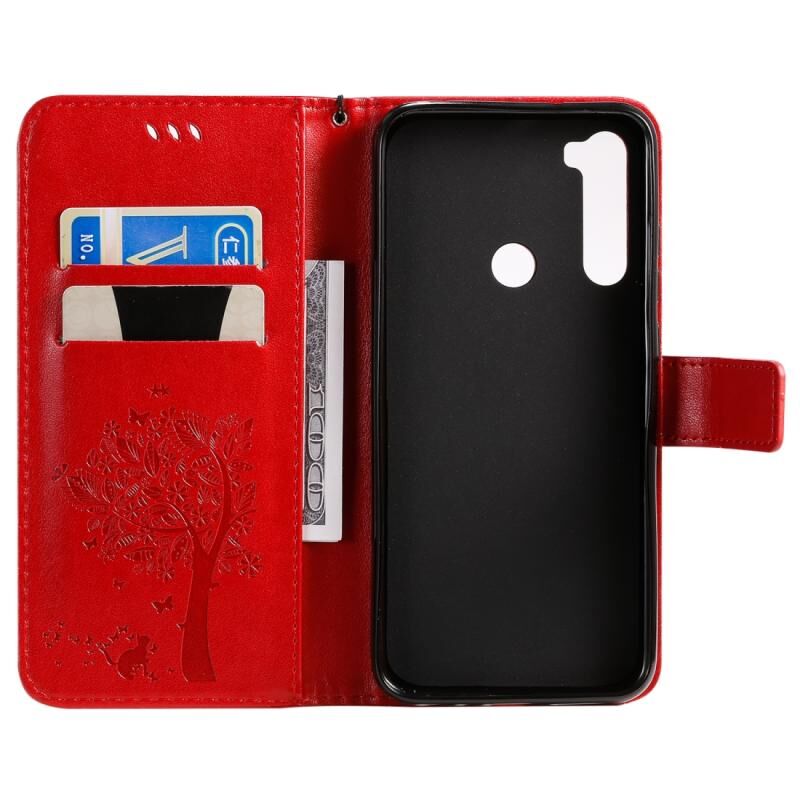 Θήκη για Xiaomi Redmi Note 8T με σχέδιο Δέντρου & Γάτας, εκτύπωση με πίεση, οριζόντια αναδίπλωση, από δερματίνη PU με βάση στήριξης & θήκες για κάρτες & πορτοφόλι & κορδόνι (Κόκκινο)