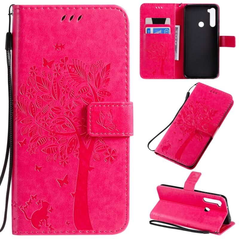 Θήκη για Xiaomi Redmi Note 8T με σχέδιο Δέντρου & Γάτας, εκτύπωση με πίεση, οριζόντια αναδίπλωση, από δερματίνη PU με βάση στήριξης & θήκες για κάρτες & πορτοφόλι & κορδόνι (Χρυσό Ρόδι)