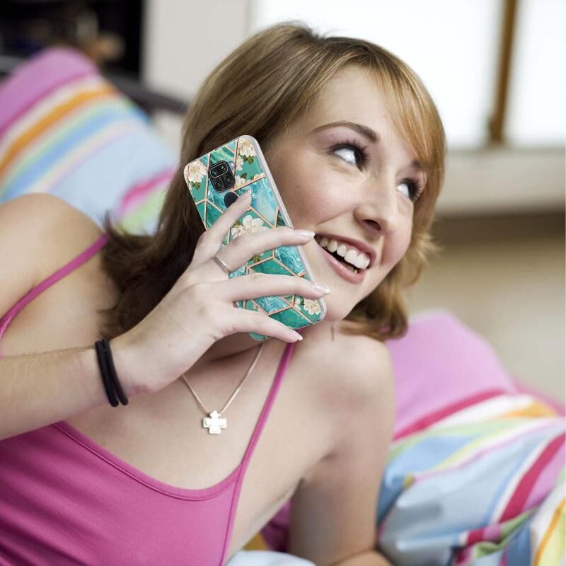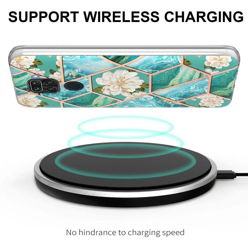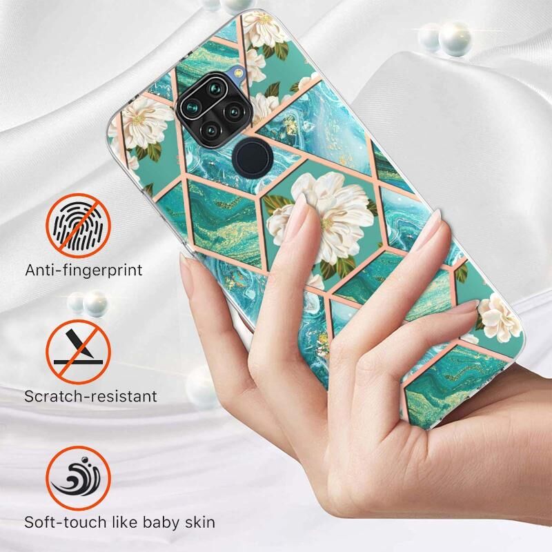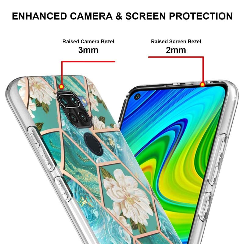 Θήκη τηλεφώνου TPU με ηλεκτρολυτική επιμετάλλωση και ψηφιδωτό σχέδιο από μάρμαρο και λουλούδια για Xiaomi Redmi Note 9 / 10X 4G (Μπλε Λουλούδι)