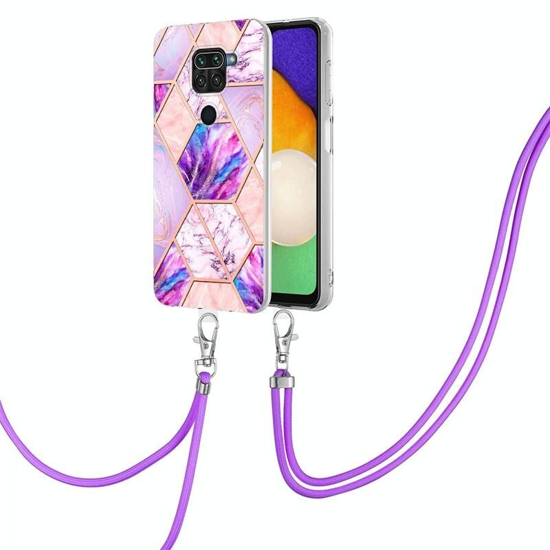Θήκη τηλεφώνου TPU με ηλεκτρολυτική επιμετάλλωση και μαρμάρινο συνδυασμό για Xiaomi Redmi Note 9 / 10X 4G με κορδόνι (ανοιχτό μωβ)