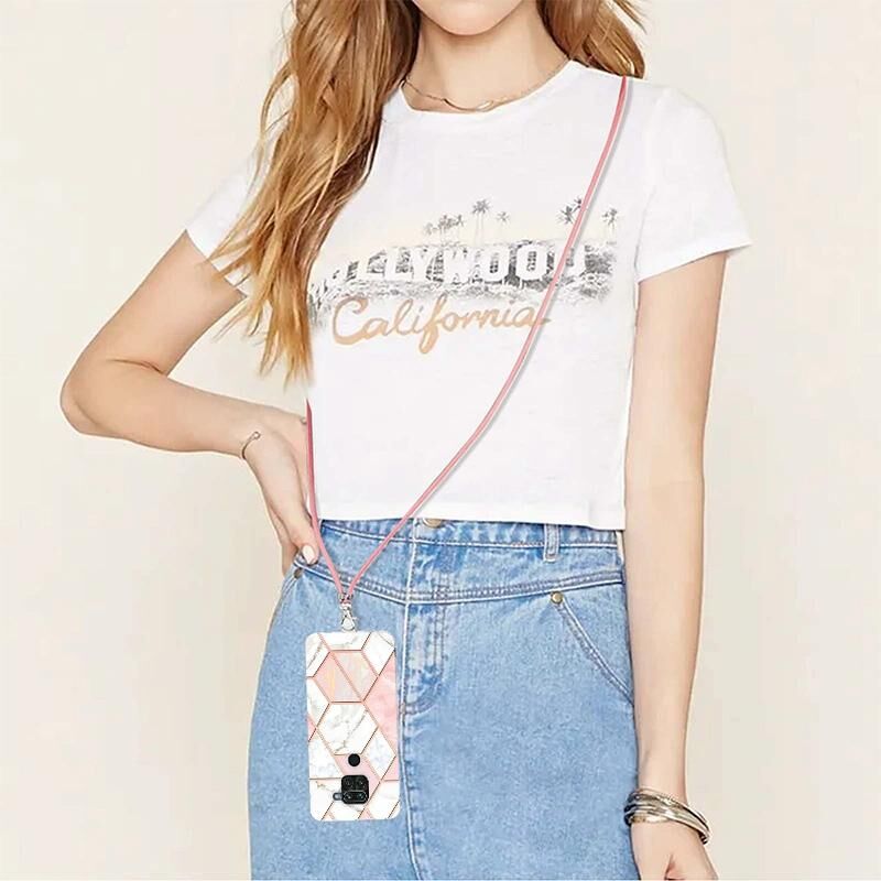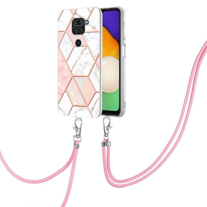 Θήκη τηλεφώνου TPU με ηλεκτρολυτική επιμετάλλωση και μαρμάρινο συνδυασμό για Xiaomi Redmi Note 9 / 10X 4G με κορδόνι (Ροζ Λευκό)
