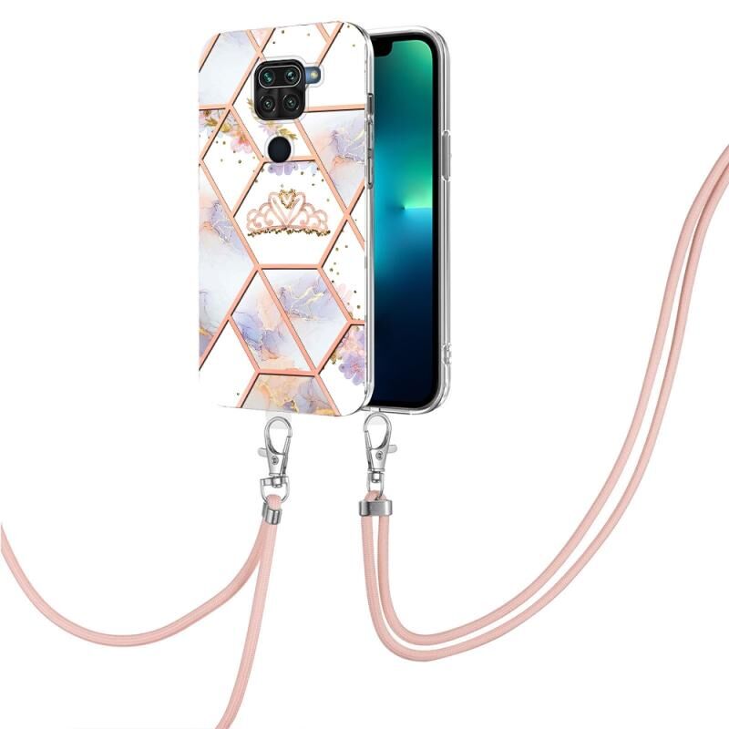 For Xiaomi Redmi Note 9 / 10X 4G Splicing Marble Flower Pattern TPU Phone Case with Lanyard(Imperial Crown)
