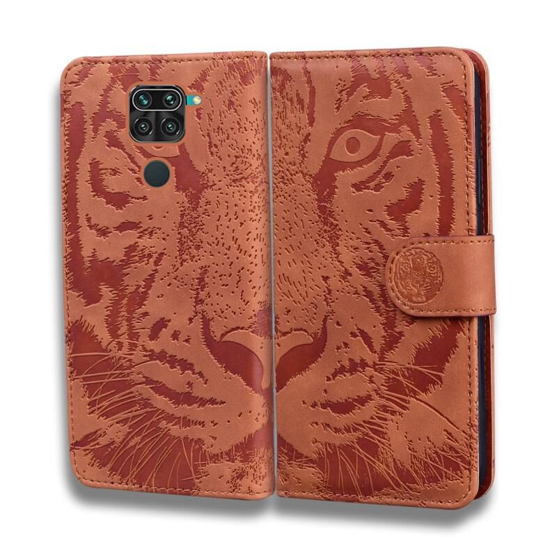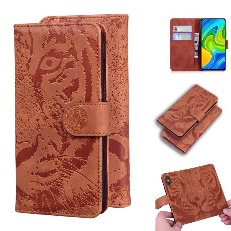 Για Xiaomi Redmi Note 9 / 10X 4G Θήκη Δέρματος Οριζόντιας Αναδίπλωσης με ανάγλυφο μοτίβο τίγρης, με βάση & Θήκες Καρτών & Πορτοφόλι (Καφέ)