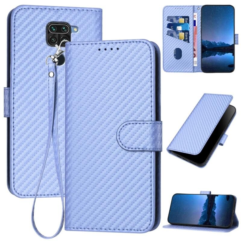 Για Xiaomi Redmi Note 9 4G / 10X 4G YX0070 Carbon Fiber πόρπη δερμάτινη θήκη τηλεφώνου με κορδόνι (ανοιχτό μοβ)