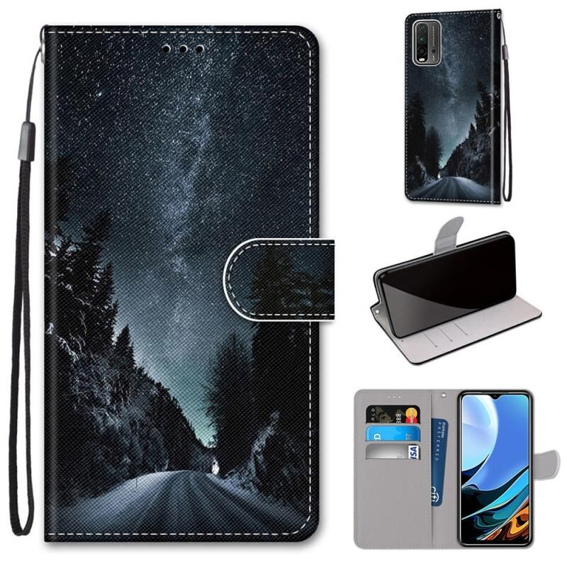 Για Xiaomi Redmi Note 9 4G / 9 Power Θήκη από Δέρμα PU με Οριζόντιο Άνοιγμα, με Σχέδιο Σταυρωτής Υφής, Χρωματιστή (Ορεινός Δρόμος με Αστρόσκονη), με Θήκη, Θήκες Καρτών, Πορτοφόλι & Λουρί.