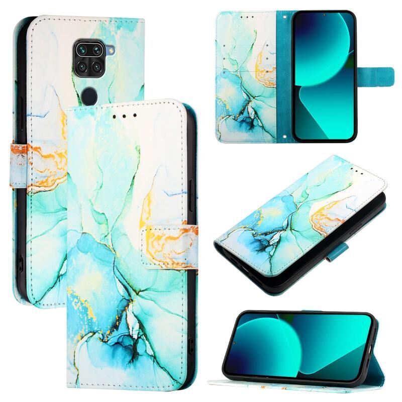 For Xiaomi Redmi Note 9 4G Global PT003 Marble Pattern Flip Leather Phone Case(Green)