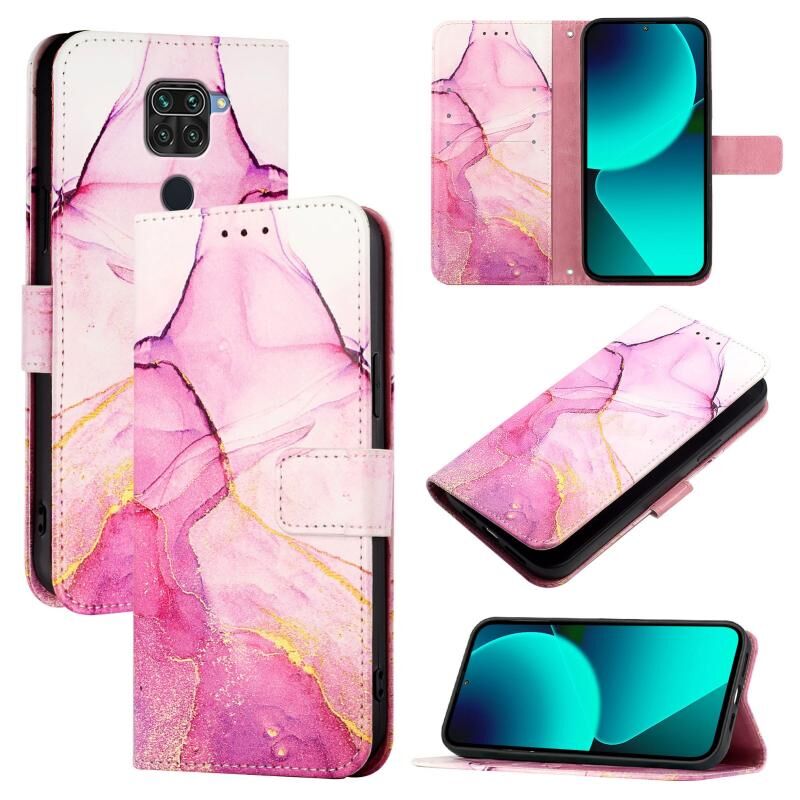 For Xiaomi Redmi Note 9 4G Global PT003 Marble Pattern Flip Leather Phone Case(Pink Purple Gold)