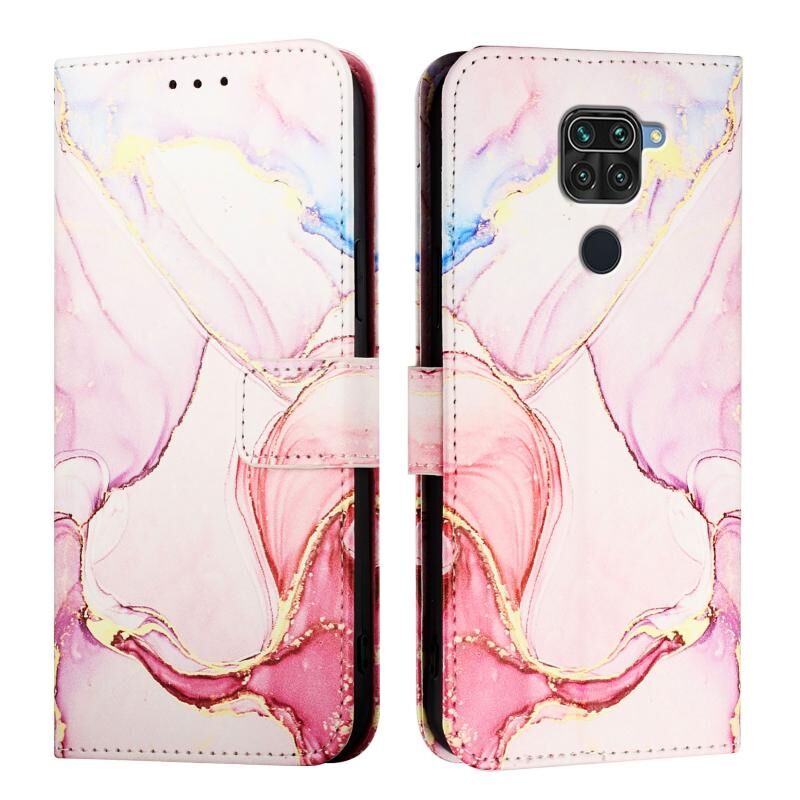 For Xiaomi Redmi Note 9 4G Global PT003 Marble Pattern Flip Leather Phone Case(Rose Gold)