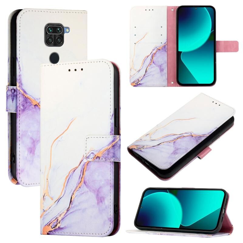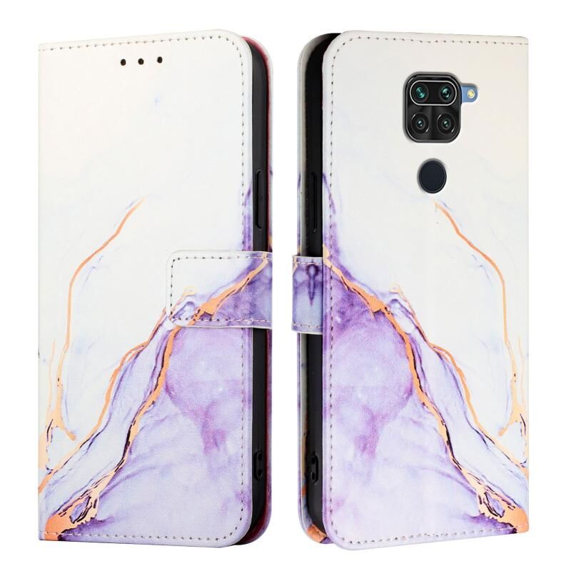 For Xiaomi Redmi Note 9 4G Global PT003 Marble Pattern Flip Leather Phone Case(White Purple)