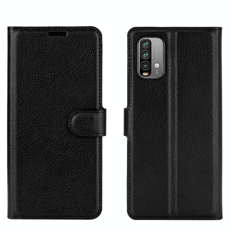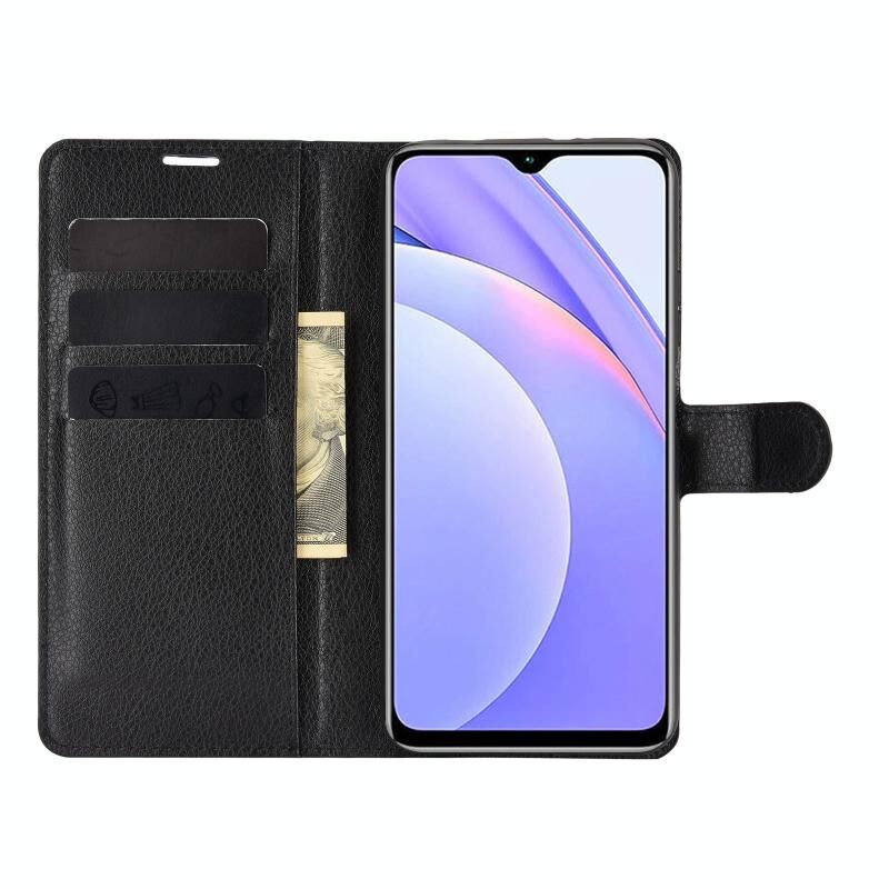 Για Xiaomi Redmi Note 9 4G Litchi υφή οριζόντια Flip προστατευτική θήκη με θήκη & υποδοχές για κάρτες & πορτοφόλι (μαύρο)
