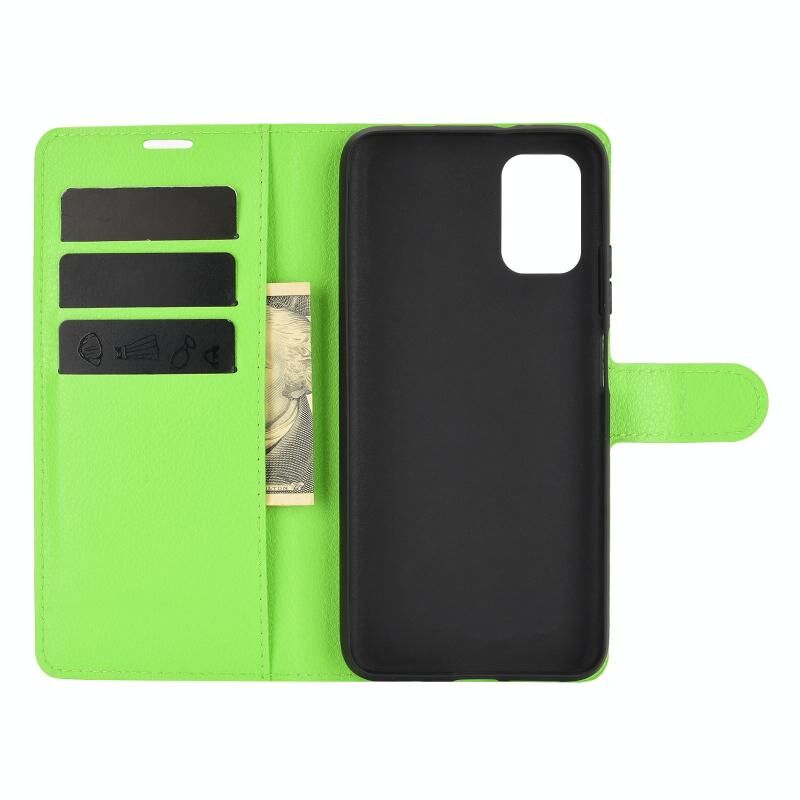 Θήκη προστασίας οριζόντιας αναδίπλωσης με υφή λυτσί για Xiaomi Redmi Note 9 4G με βάση στήριξης & υποδοχές καρτών & πορτοφόλι (Μωβ)