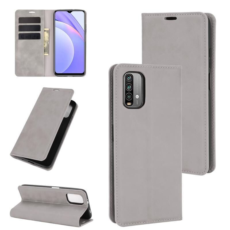 Για Xiaomi Redmi Note 9 4G Retro-skin Business Μαγνητική δερμάτινη θήκη αναρρόφησης με θήκη & υποδοχές καρτών & πορτοφόλι (γκρι)
