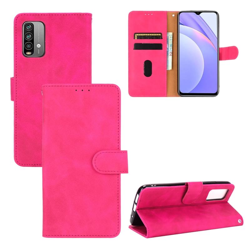 For Xiaomi Redmi Note 9 4G Solid Color Skin Feel Magnetic Buckle Horizontal Flip Calf Texture PU Leather Case with Holder & Card Slots & Wallet(Rose Red)