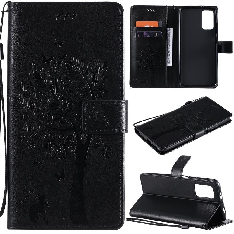 Θήκη για Xiaomi Redmi Note 9 4G με σχέδιο Δέντρου & Γάτας, εκτυπωμένη με θερμοτύπηση, οριζόντια αναδιπλούμενη από δερματίνη PU με βάση στήριξης & θήκες για κάρτες & πορτοφόλι & κορδόνι (Πράσινο)