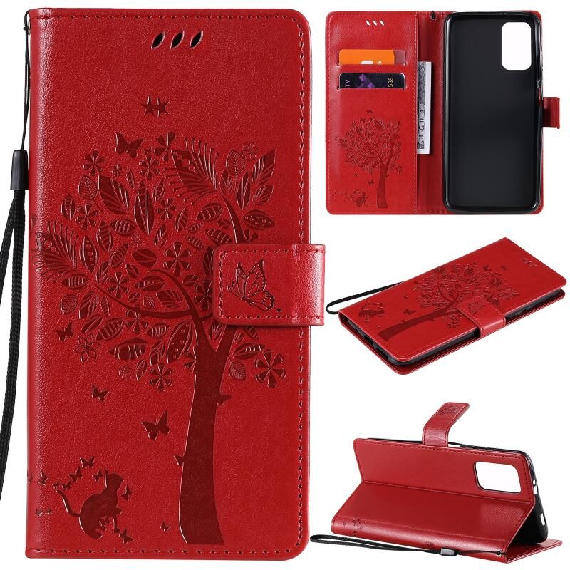 Θήκη για Xiaomi Redmi Note 9 4G με σχέδιο Δέντρου & Γάτας, εκτυπωμένη με θερμοτύπηση, οριζόντια αναδιπλούμενη από δερματίνη PU με βάση στήριξης & θήκες για κάρτες & πορτοφόλι & κορδόνι (Πράσινο)