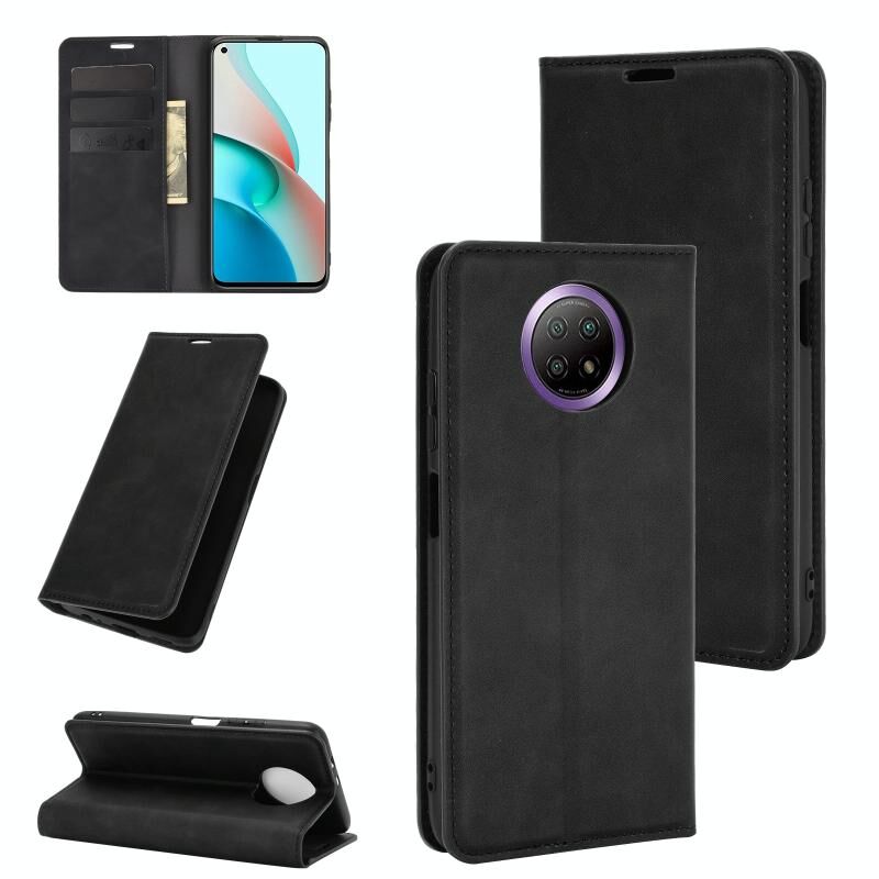 Για Xiaomi Redmi Note 9 5G έκδοση Κίνα Retro-skin Business μαγνητική δερμάτινη θήκη αναρρόφησης με θήκη & υποδοχές καρτών & πορτοφόλι (μαύρο)
