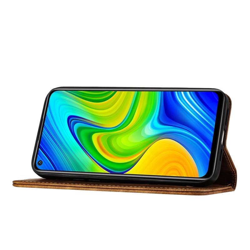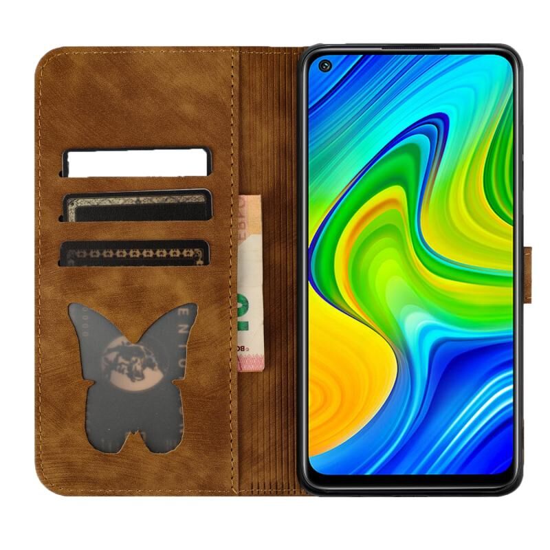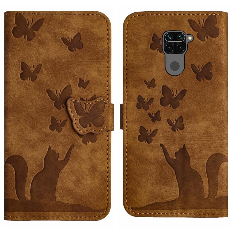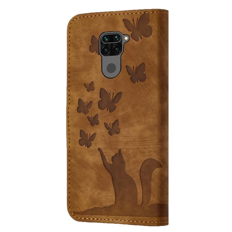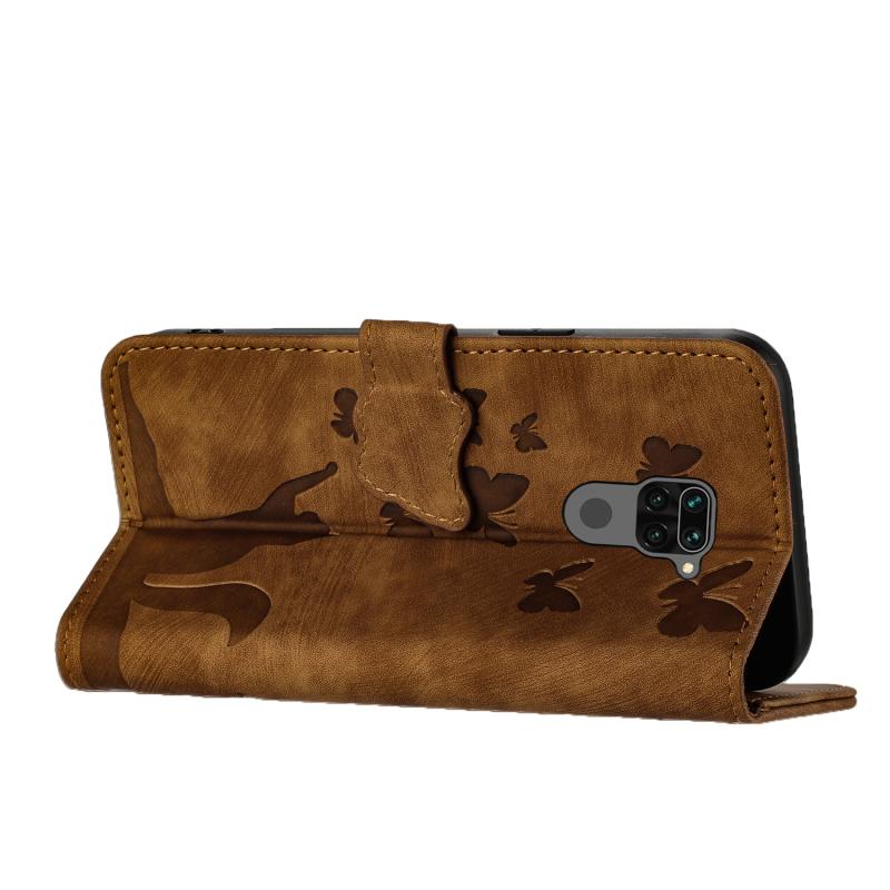 Θήκη δερμάτινη flip με ανάγλυφο σχέδιο γάτας για Xiaomi Redmi Note 9 (Καφέ)