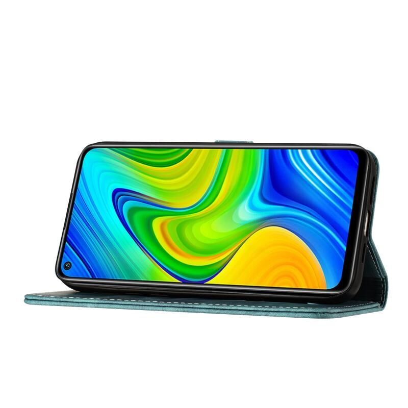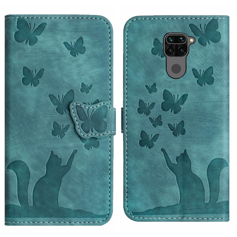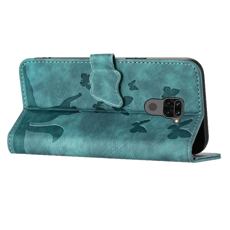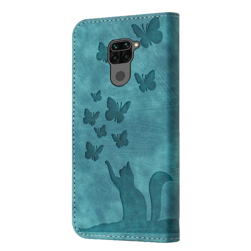 Θήκη δερμάτινη flip με ανάγλυφο σχέδιο γάτας για Xiaomi Redmi Note 9 (Wathet)