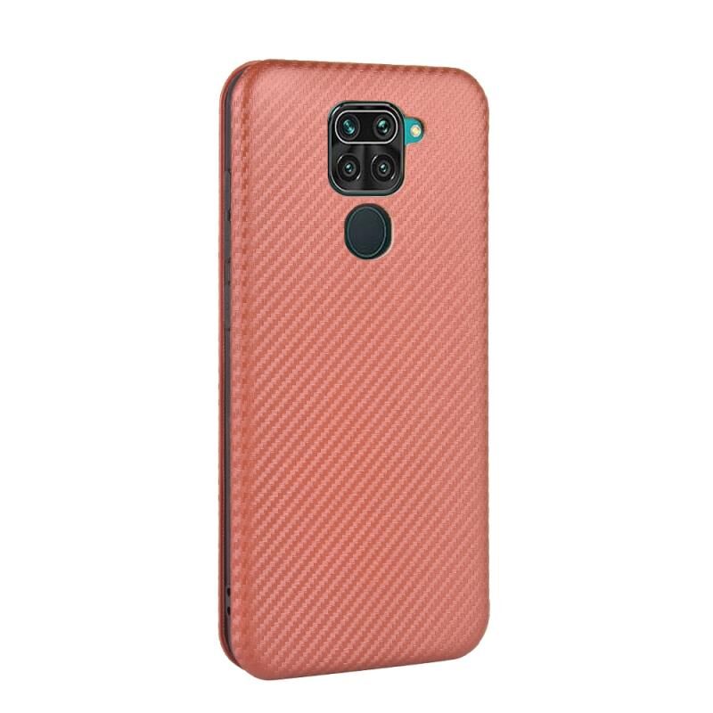 Για Xiaomi Redmi Note 9 Carbon Fiber Texture Οριζόντια Flip TPU + PC + PU δέρμα υπόθεση με υποδοχή κάρτας (καφέ)