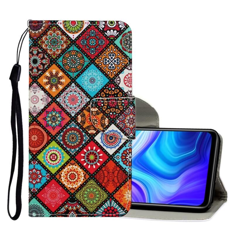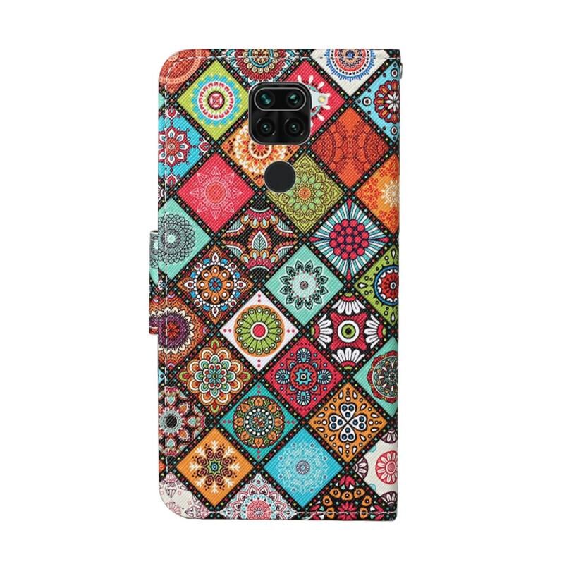 Θήκη δέρματος οριζόντιας αναδίπλωσης με σχέδια ζωγραφικής και χρώματα για Xiaomi Redmi Note 9 με βάση στήριξης & υποδοχές καρτών & πορτοφόλι (Κόκκινο)